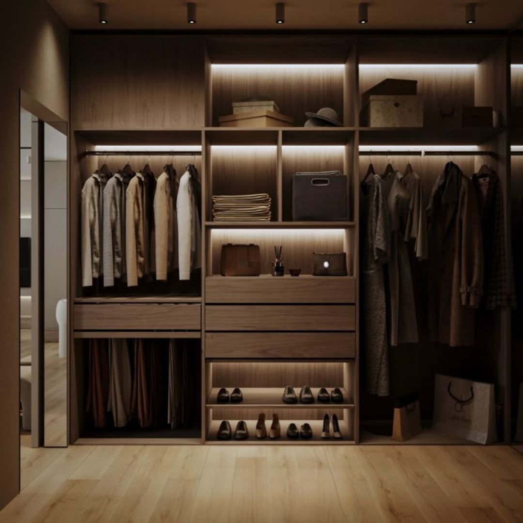 - All Inclusive: Closet Carcass + (Automatic) Built-in Light + All Hinges + Drawers + Hanging Bars