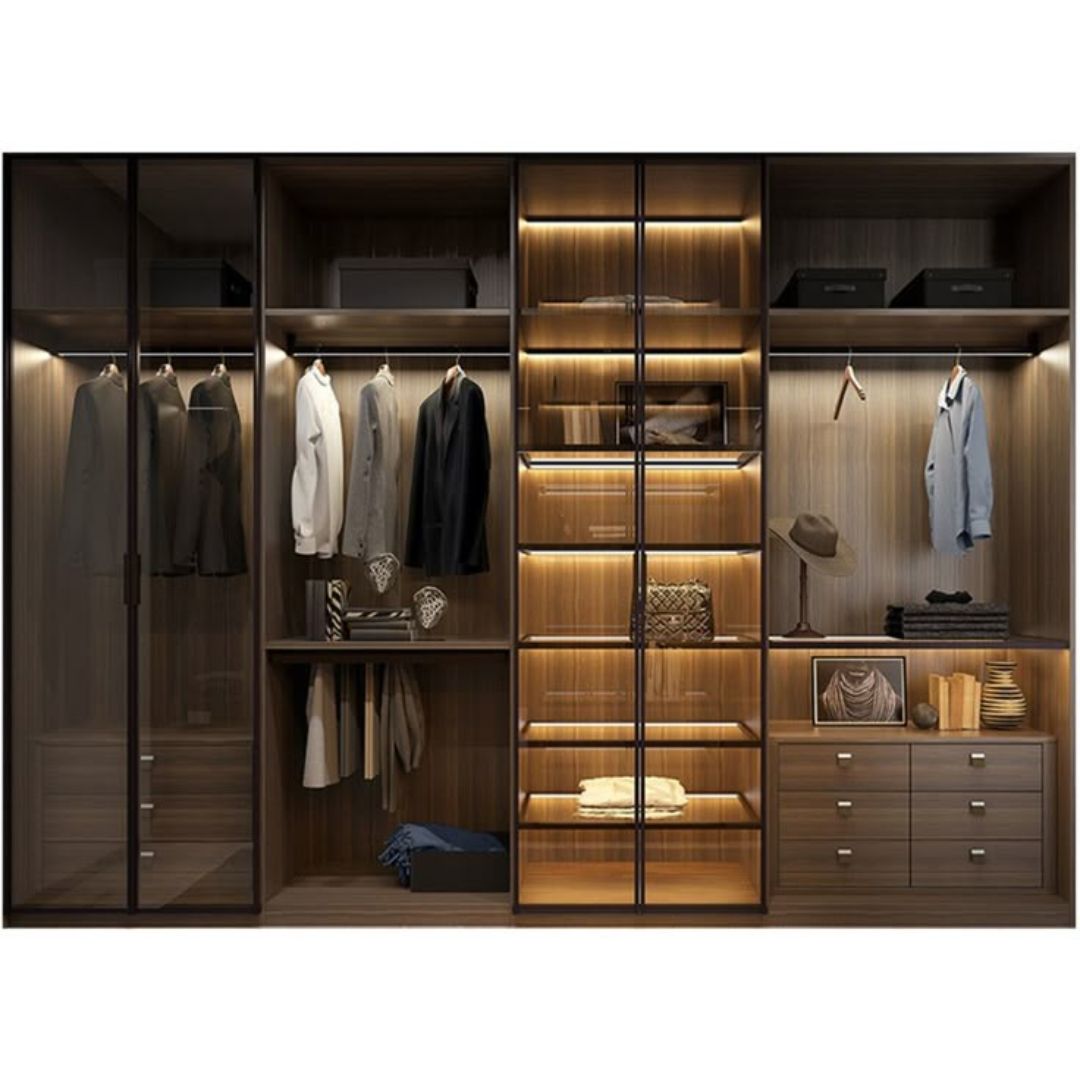 - All Inclusive: Glass Door + Closet Carcass + (Automatic) Built-in Light + All Hinges + Drawers + Hanging Bars